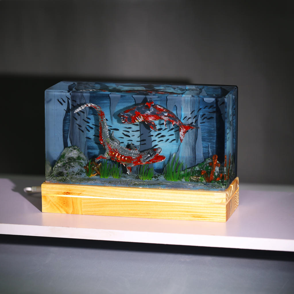 Diorama Zombie Crocodile and Shark Night Light: Two Demon Lords of the Deep Sea