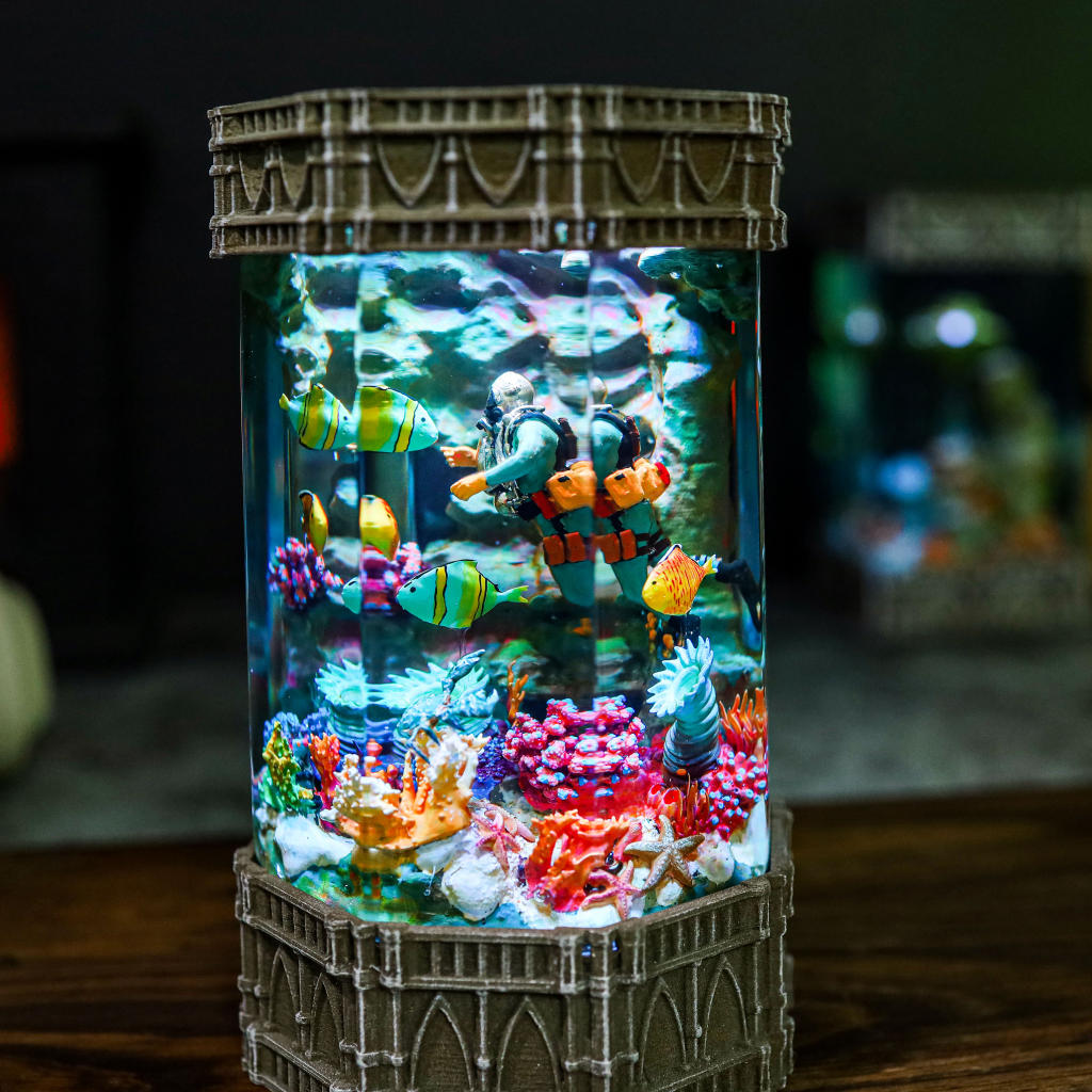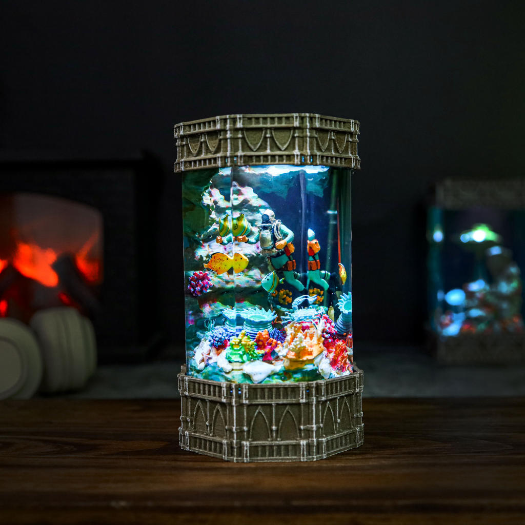 While its design is a showstopper, the quality of the Diver in Coral Reef Night Light is just as impressive. Crafted from premium, hand-poured resin, this lamp ensures durability and resists yellowing, preserving its beauty for years. Its multi-faceted prism shape is a modern twist, adding a distinctive and artistic touch to your décor. This is more than just a night light; it’s a centerpiece that brings elegance and tranquility into your home.