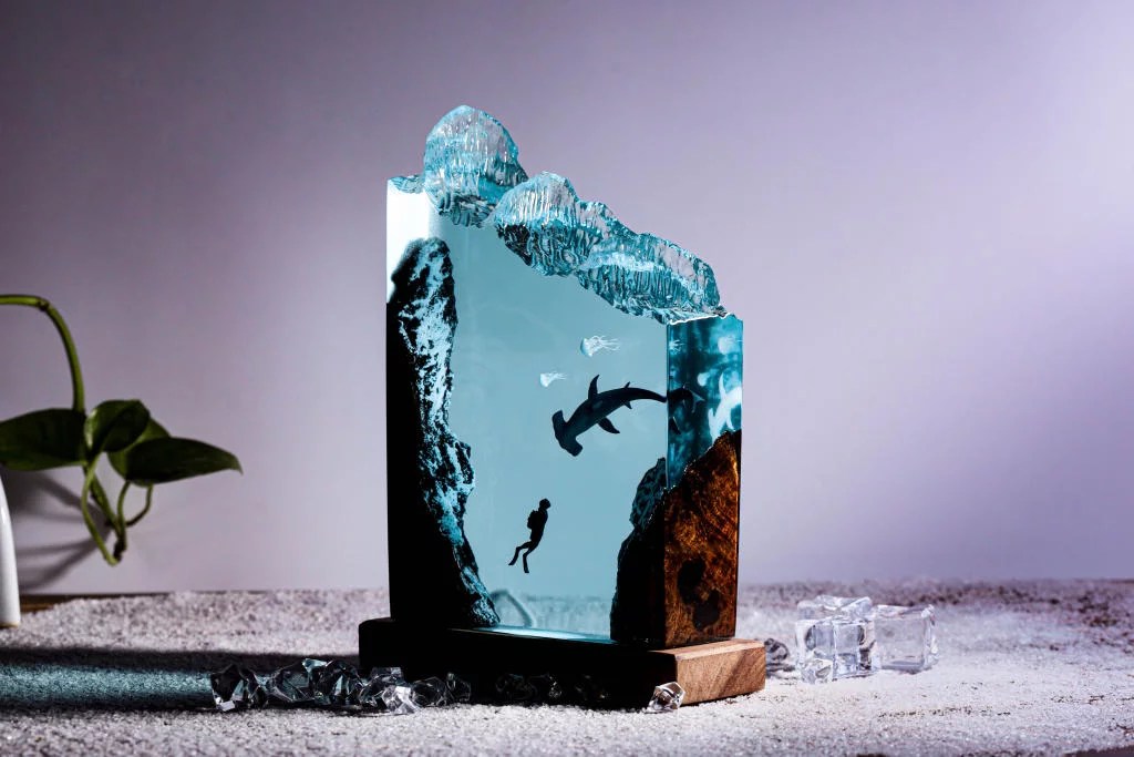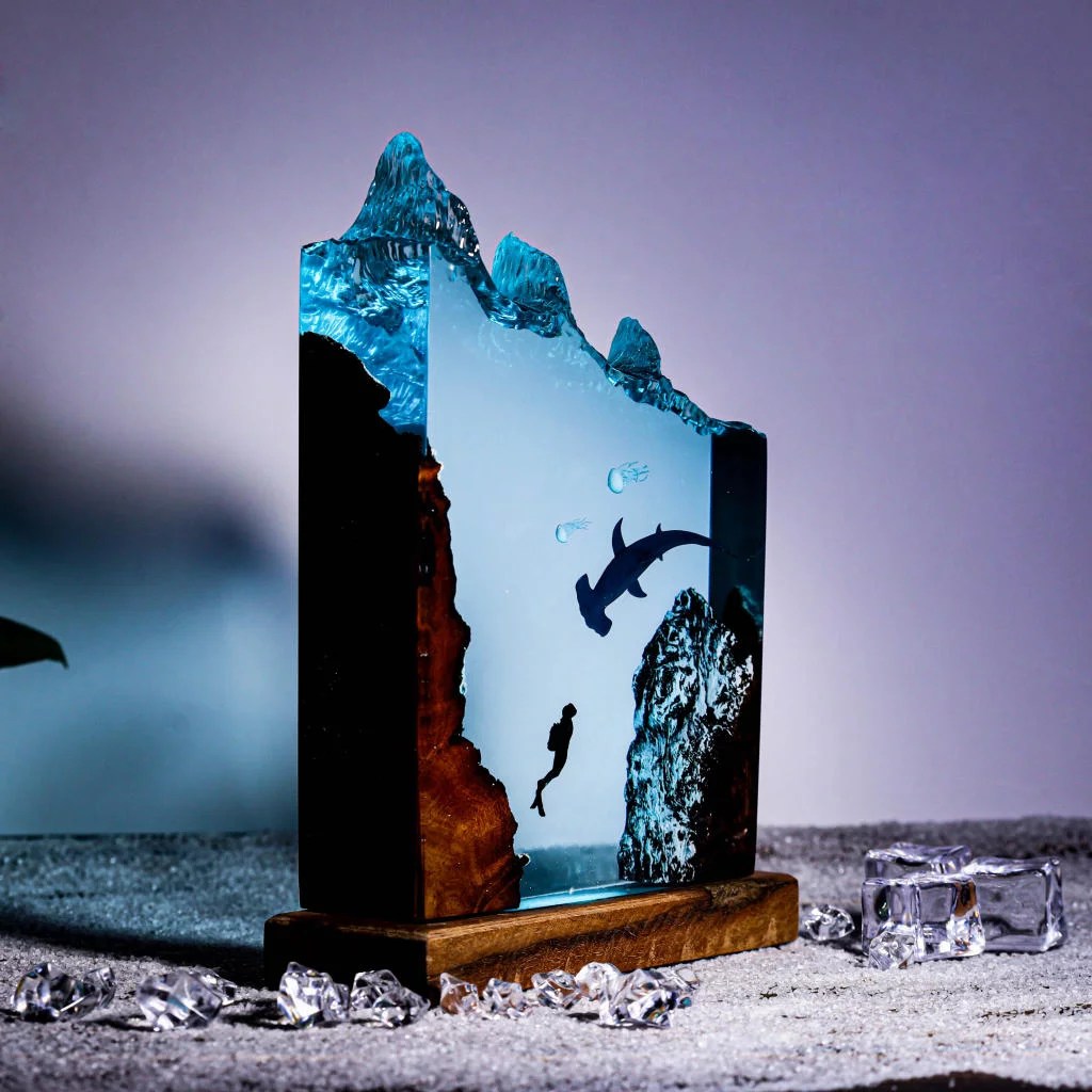 Simply turn on the Hammerhead shark and diver resin lamp, lay your back on the bed and imagine the vast undersea world!