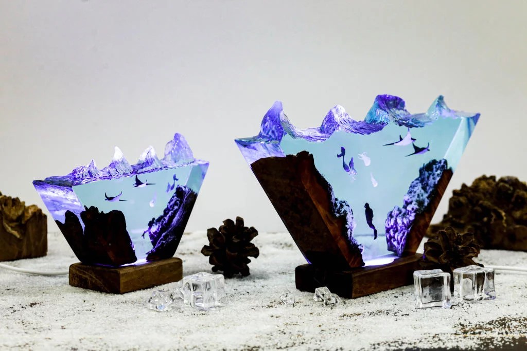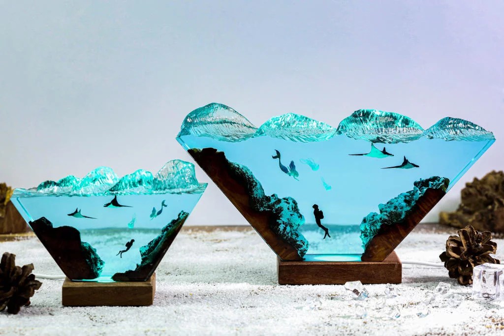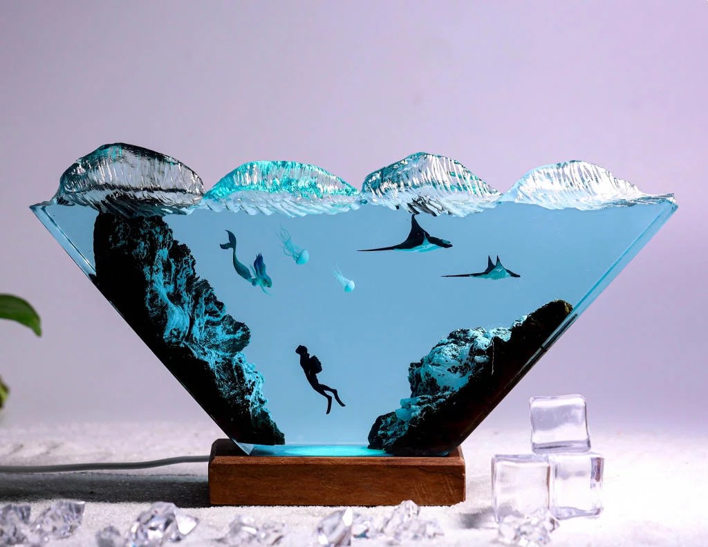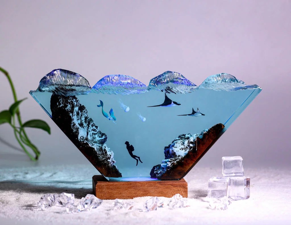 Immerse yourself in the warm light and feel the healing that comes from Mermaid and Diver resin lamp ver 2 as well as other EpoLume epoxy lamps.