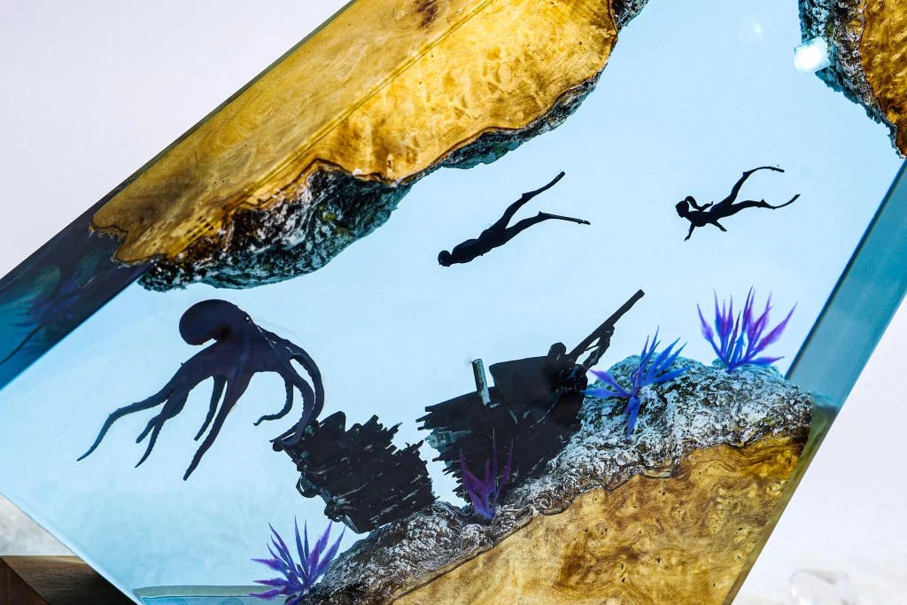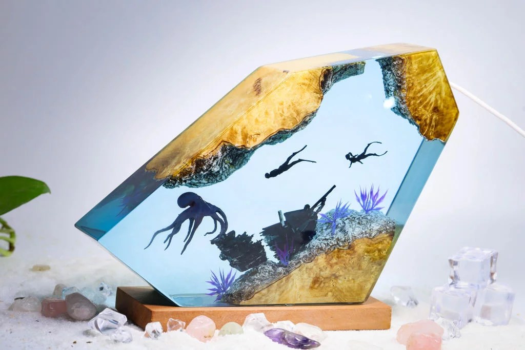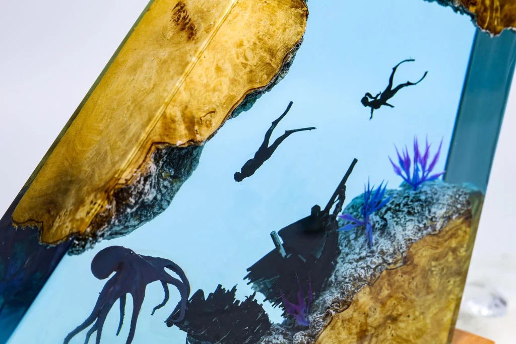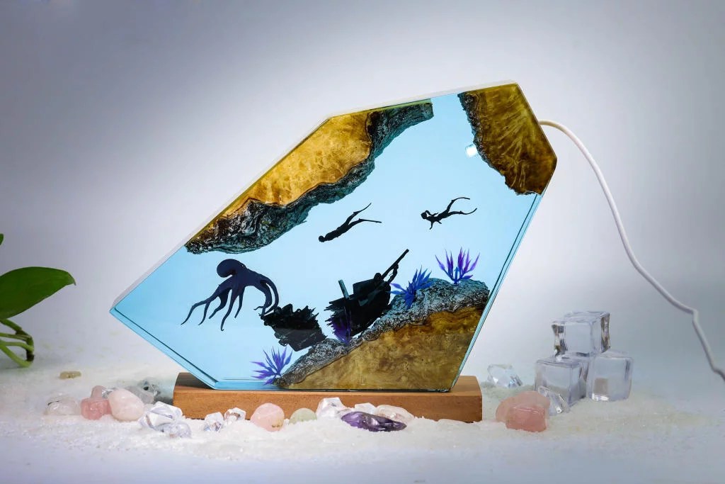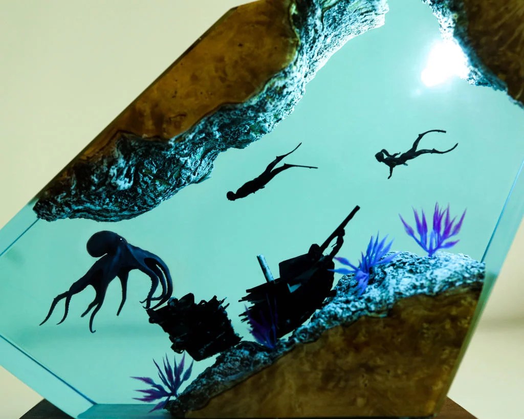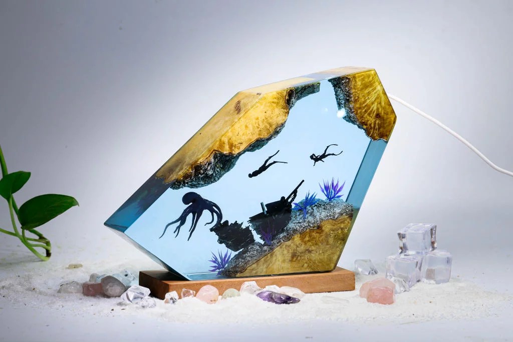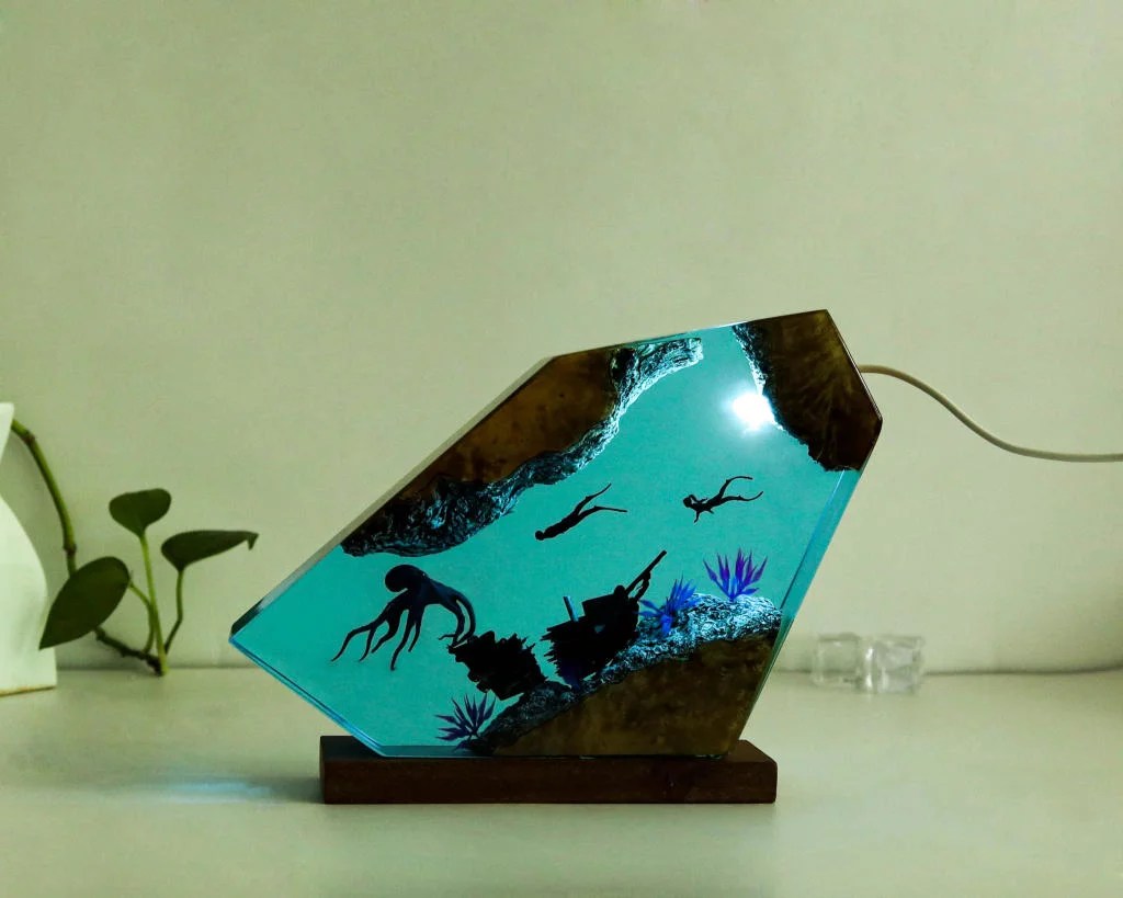 The Octopus and Divers epoxy lamp spirit serves as a reminder to never focus on our limitations and to always find innovative ways to get around them.
