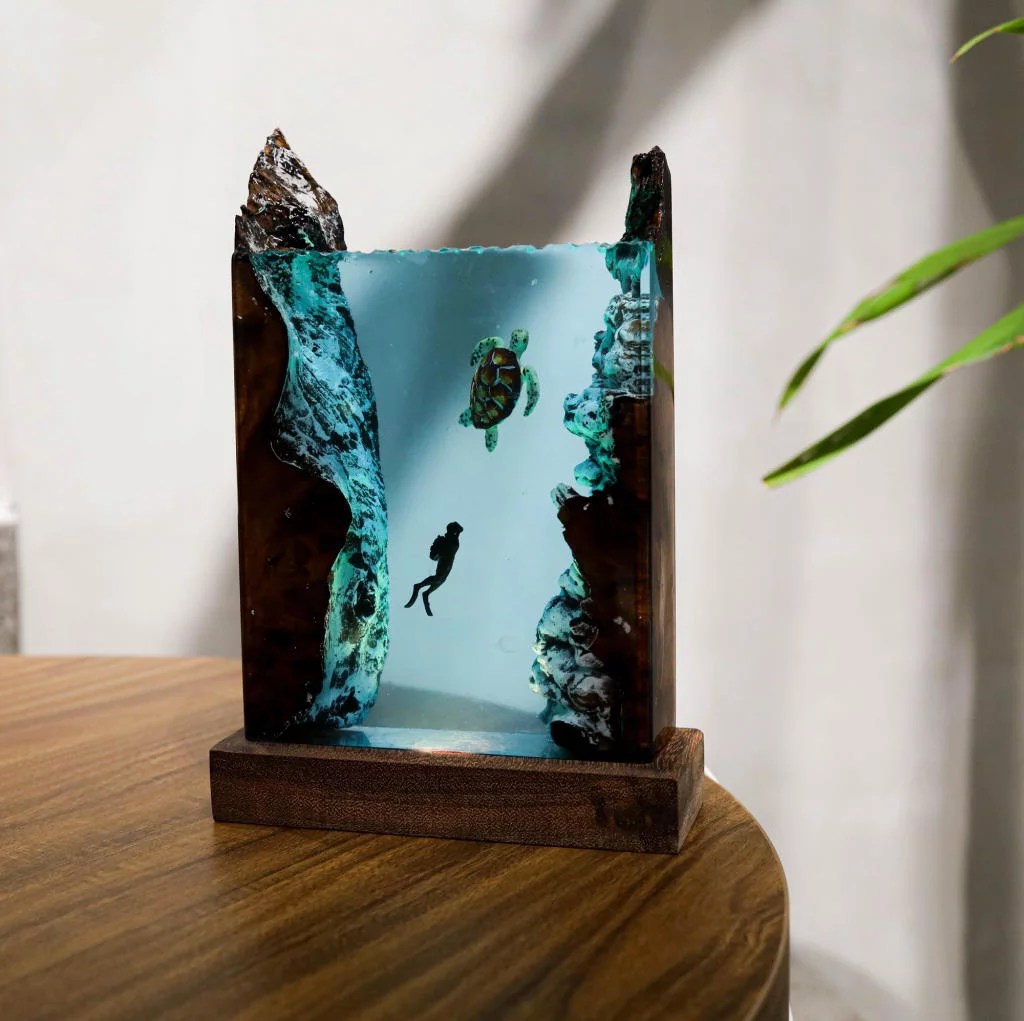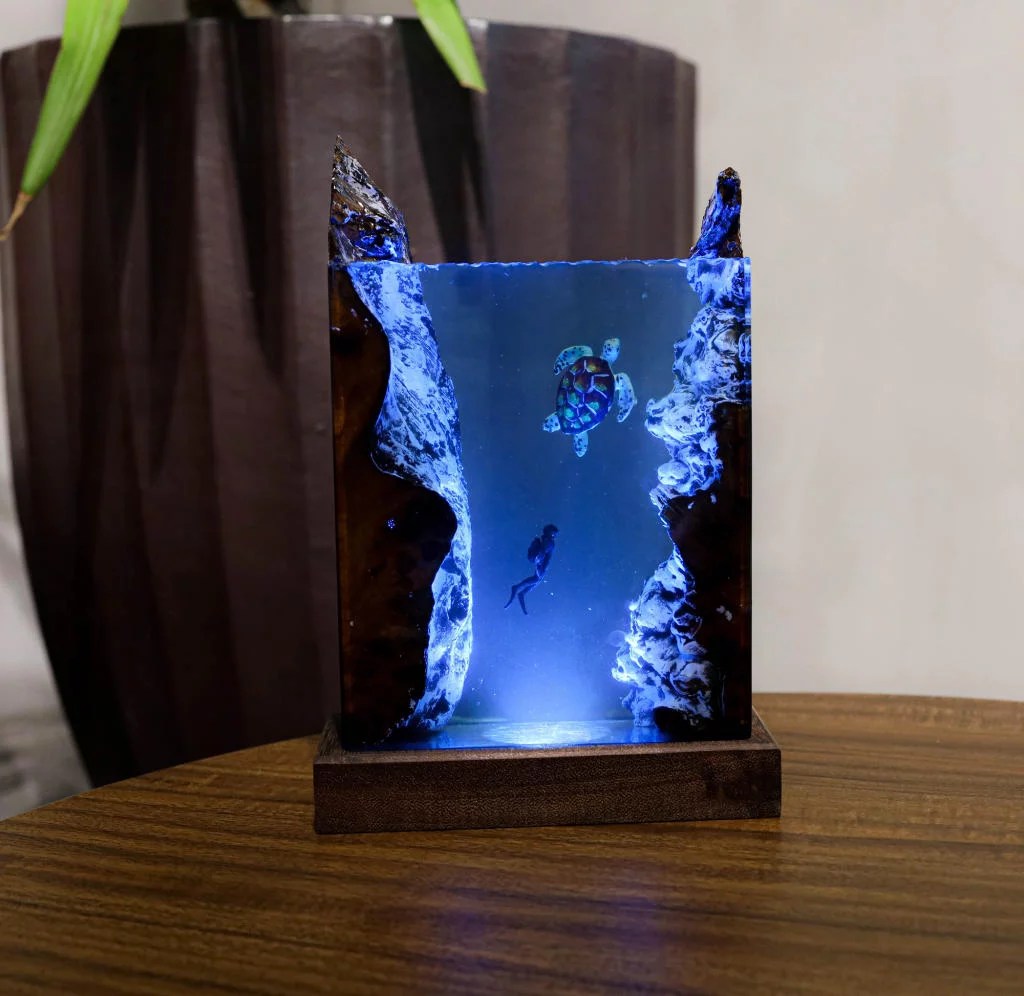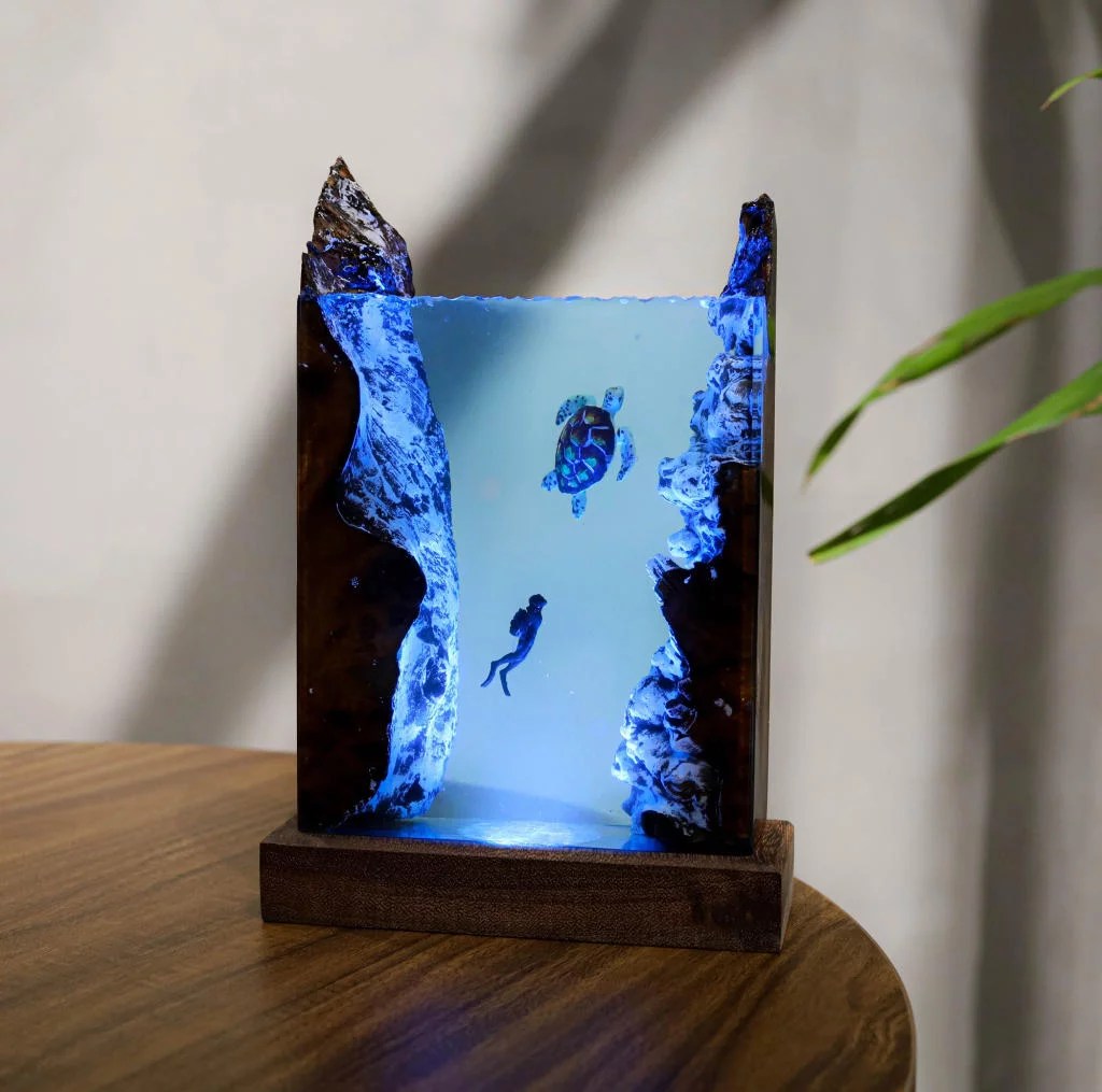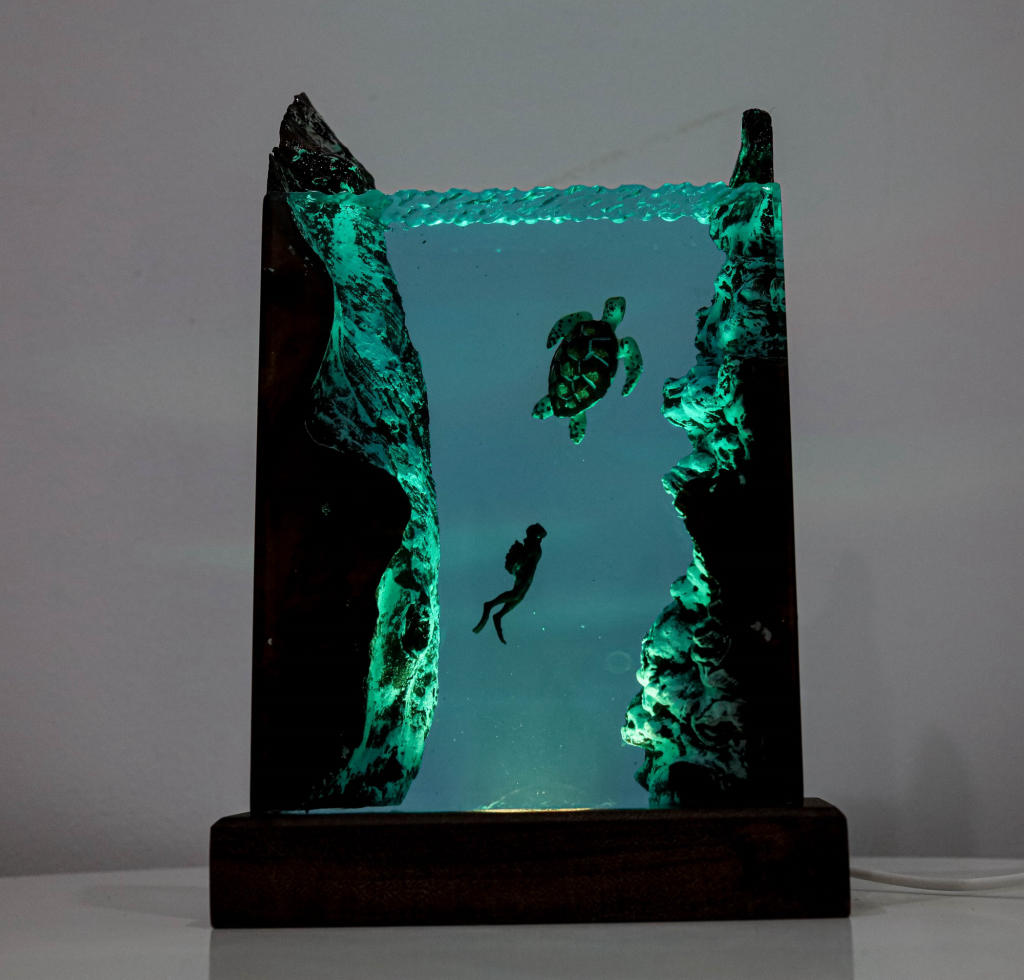 Sea Turtle Diver Night Light Ver 1: A magnificent ocean-theme resin lamp to find peace of mind